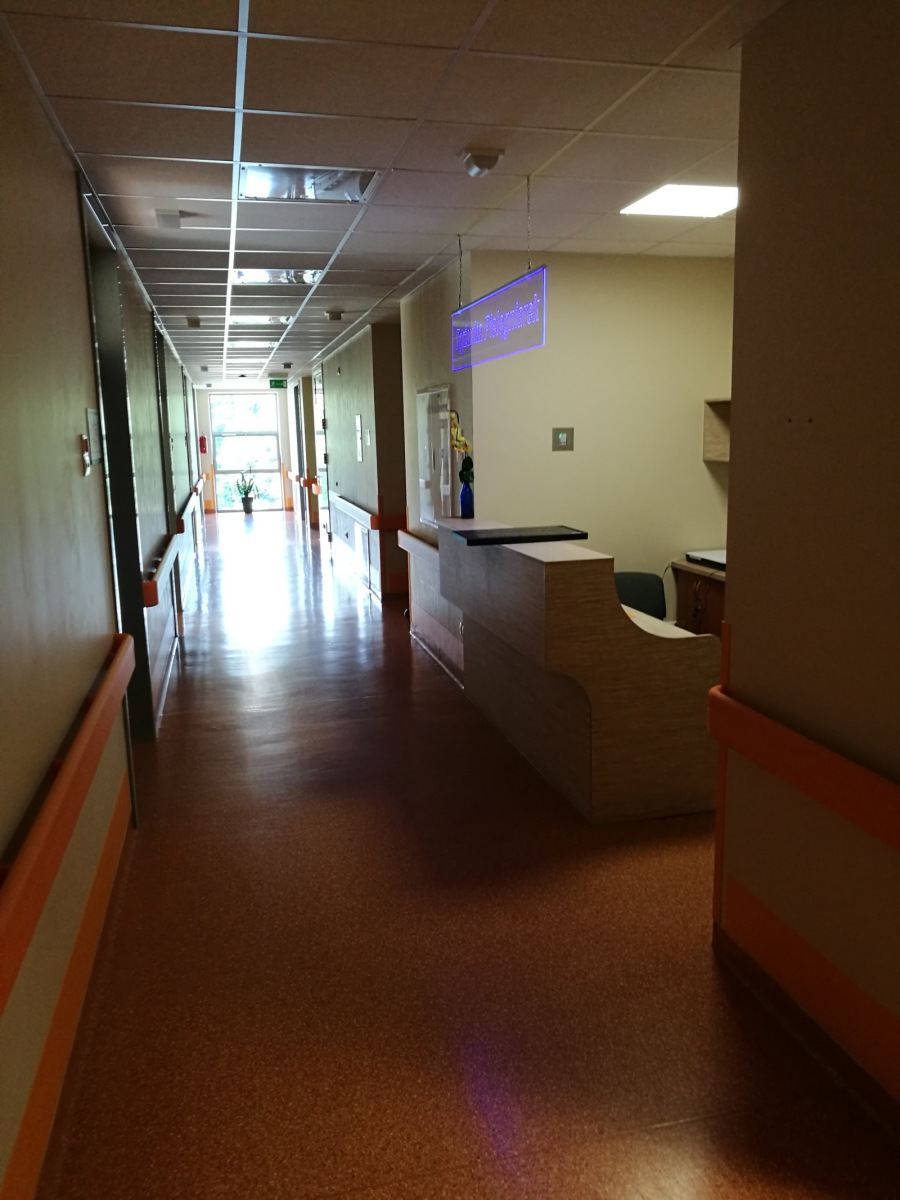 Zakład Opiekuńczo-Leczniczy mieści się w budynku A1 ( budynek z lądowiskiem dla helikoptera) - plan szpitala.